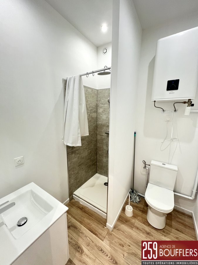 STUDIO RÉNOVÉ - LIVERDUN. COUP DE COEUR ! Venez découvrir à LIVERDUN, en contre-bas de la cité médiévale (rue de la Gare), ce studio lumineux d'une surface de 19.28m2, situé au rez-de-chaussée d'une petite monopropriété entretenue. Ce bien rénové avec des matériaux de qualité offre : une entrée, une pièce de vie avec kitchenette ouverte totalisant 15.60m2 et une salle d'eau avec WC. Emplacement de parking extérieur privatif au sein de la monopropriété (en arrière cour avec accès par une porte automatisée). Chauffage individuel électrique. Proche de toutes commodités (transports, gare, commerces, écoles, pharmacie, aire de jeux...). Loyer : 415.00 EUR charges comprises (soit 365.00 EUR de loyer + 50.00 EUR de provision sur charges comprenant l'eau froide, l'électricité des parties communes, l'entretien des parties communes, ainsi que la taxe des ordures ménagères). Dépôt de garantie : 365.00 EUR. Honoraires : 212.00 EUR dont 57.00 EUR pour l'état des lieux. Si vous avez besoin d'aide dans votre recherche de logement, votre agence AGENCE DE BOUFFLERS se fera un plaisir de vous aider. www.agencedeboufflers.fr / agencedeboufflers@orange.fr DISPONIBLE IMMÉDIATEMENT.Les informations sur les risques auxquels ce bien est exposé sont disponibles sur le site Géorisques : www.georisques.gouv.fr