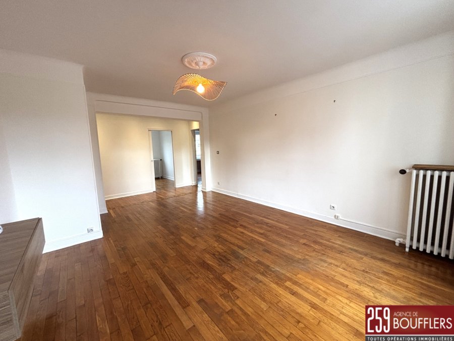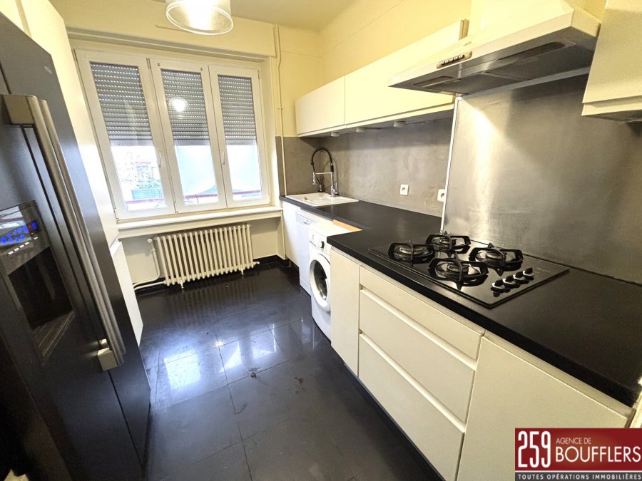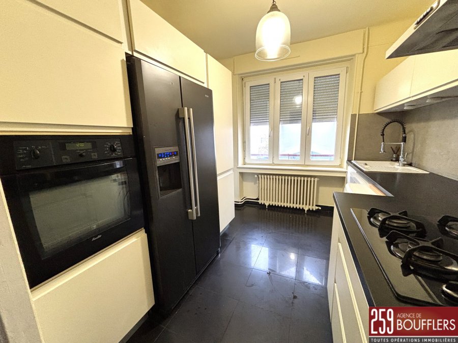 NANCY BOUFFLERS-BUTHEGNEMONT / APPARTEMENT 4 PIECES AVEC GAR. En Exclusivité. NANCY secteur BOUFFLERS/BUTHEGNEMONT. Appartement de 4 pièces principales, d'une surface de 84.33m2 CARREZ, situé au rez-de-chaussée surélevé d'une petite copropriété. Offrant : une entrée avec placard, une cuisine séparée et équipée avec espace cellier, un salon/séjour de 24.72m2, un dégagement desservant 3 chambres (9.22m2, 10.54m2, 13.18m2), une salle d'eau et un WC séparé. Cave privative au sous-sol, espace de stationnement et garage privatif. Chauffage individuel gaz. Idéalement situé, proche de toutes commodités (transports : bus ligne T4, axes autoroutiers, commerces, écoles, pharmacie...). www.agencedeboufflers.frLes informations sur les risques auxquels ce bien est exposé sont disponibles sur le site Géorisques : www.georisques.gouv.fr
