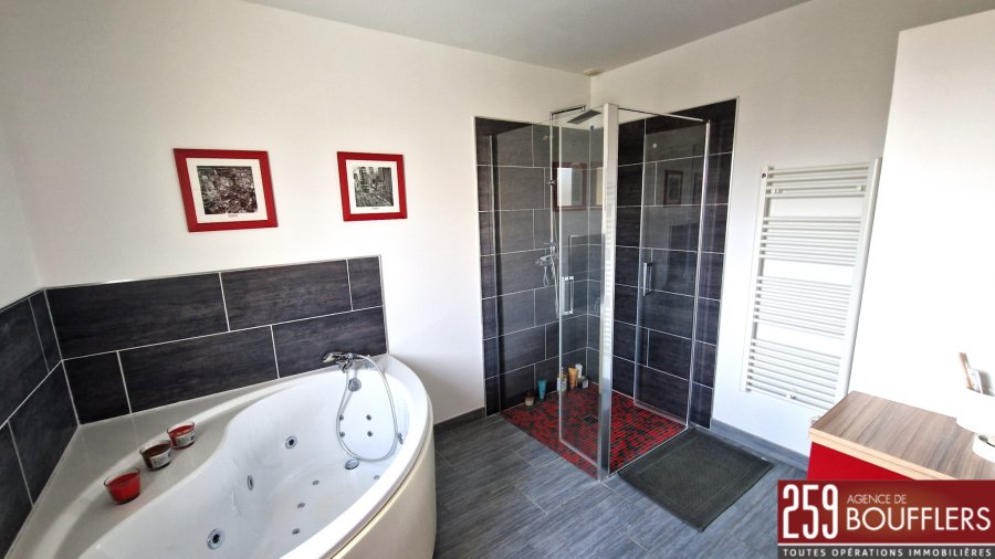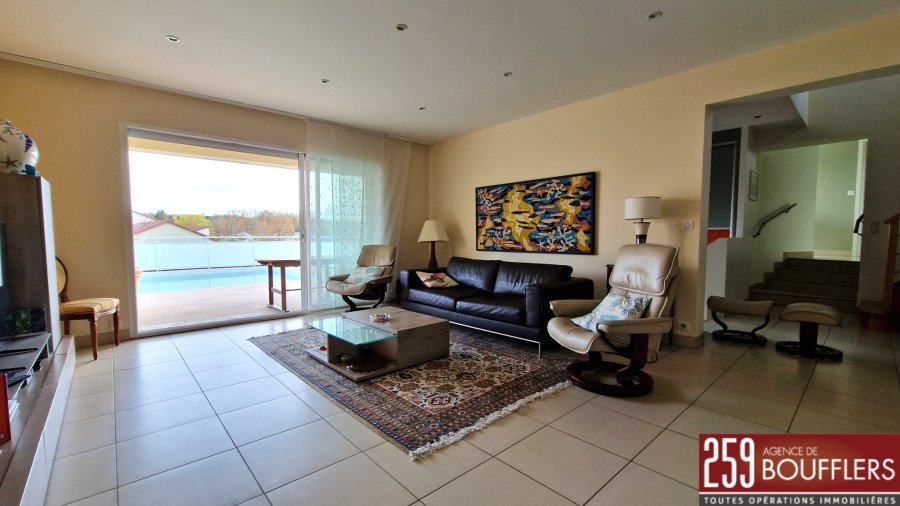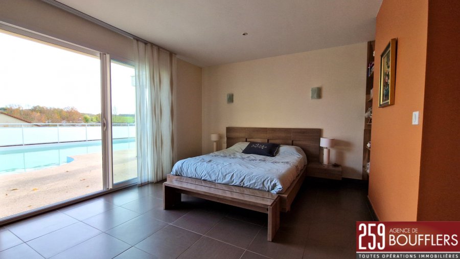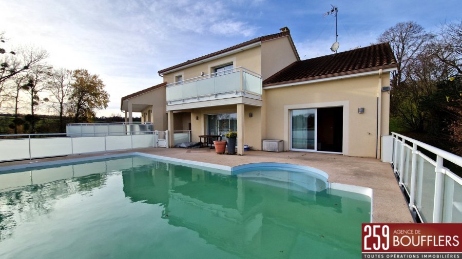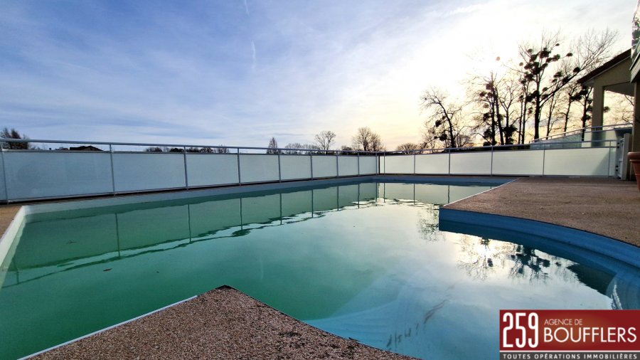 MAISON CONTEMPORAINE AVEC PISCINE. En Exclusivité. COUP DE COEUR ! NANCY NORD EST. Sur la commune de MAZERULLES à 15min de la Porte Verte. Maison contemporaine indépendante avec jardin et piscine chauffée. Offrant 231m2 habitables sur trois niveaux, construite en 2006 sur une parcelle de 1 247m2 avec piscine extérieure. Au sous-sol : une cave de 21.56m2 et un garage deux véhicules de 29.61m2 avec borne de recharge universelle. Au rez-de-chaussée : une entrée, une cuisine séparée équipée avec accès sur une terrasse/loggia de 29.87m2, un cellier, un WC, un salon/séjour de 32.23m2, une salle à manger de 27.34m2, une chambre de 16.94m2, un bureau de 10.83m2 et une salle d'eau avec WC. A l'étage : un dégagement desservant trois chambres dont une avec accès sur un balcon de 8.35m2 (12.81m2, 21.30m2 et 19.67m2), une salle de bains (douche + baignoire) et un grenier de 19.01m2. Une piscine vient compléter ce bien et invite à la détente aux beaux jours. Performance énergétique et climatique classée 'B' dont émissions de gaz à effet de serre classées 'A', performance d'isolation très bonne. Système de chauffage au sol par pompe à chaleur avec programmateur avec réduit. Idéalement située, proche arrêts de bus et commerces. www.agencedeboufflers.frLes informations sur les risques auxquels ce bien est exposé sont disponibles sur le site Géorisques : www.georisques.gouv.fr